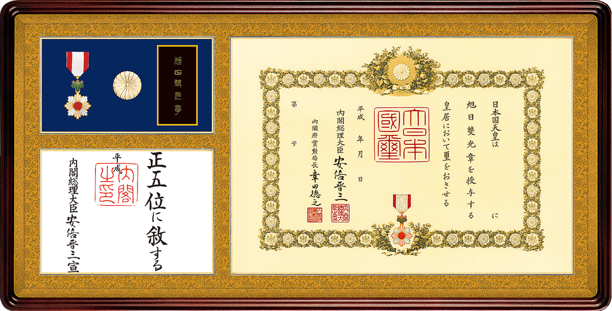 叙勲額等を、棚や床などに置いて飾る場合に利用する専用額立てです。